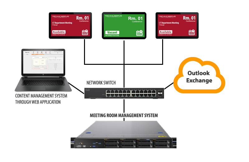 Meeting Room Manager is a system used to display room information for a variety of usage such as meeting room schedules, classrooms and events. The middleware responsible of controlling and streaming over meeting room’s door label screens provides the user with features like reservations for meeting room spaces, displaying the availability of meeting room (available/busy), upcoming events and advertisements.